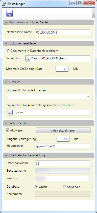 Named Pipe Namen müssen bei ERP und DMS Datenbank gleich sein. Der Name wird vom System automatisch um [.Datenbankname][.Username] erweitert, um auch im Terminalserverbetrieb und mit mehreren Datenbanken funktionsfähig zu sein.