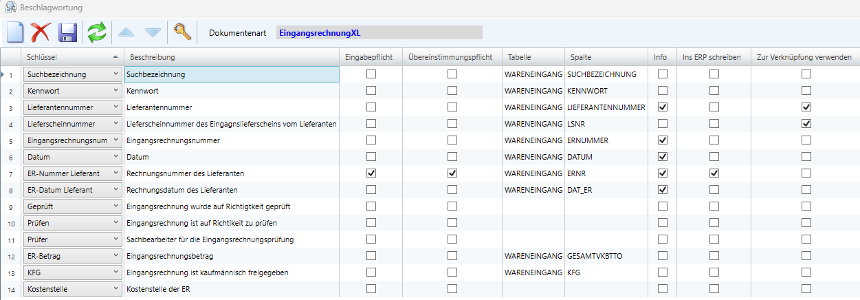Hier wird definiert, welche Werte aus dem ERP Dokument automatisch zur Beschlagwortung des DMS Dokuments verwendet werden.