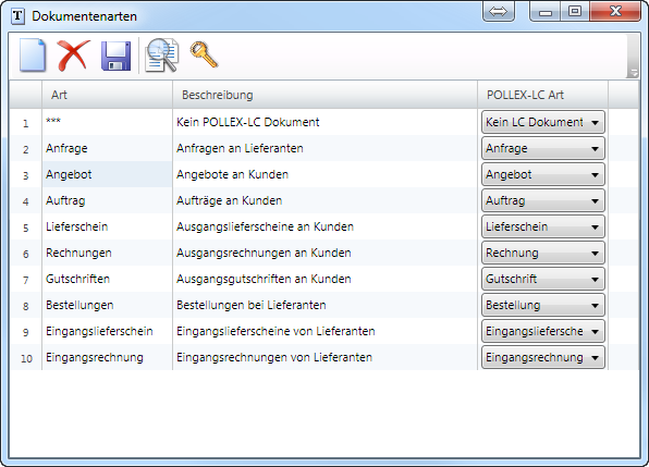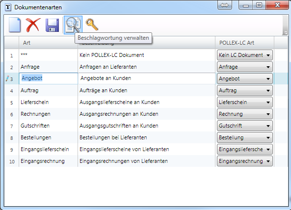 Für alle Dokumente, die automatisch beschlagwortet werden sollen, muss hier ein Eintrag erstellt werden und die Dokumentenart definiert werden.