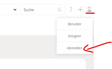 Um einen User Designer-Rechte zu geben muss man bei den Benutzerrechten unter der Karteikarte Admin die Checkbox "MFX.CRM Admin" aktivieren. Wenn diese Einstellung aktiviert ist kann dieser Benutzer im CRM rechts oben den Button für den Designer sehen (Bsp.: siehe punkt "Logout" unterhalb)