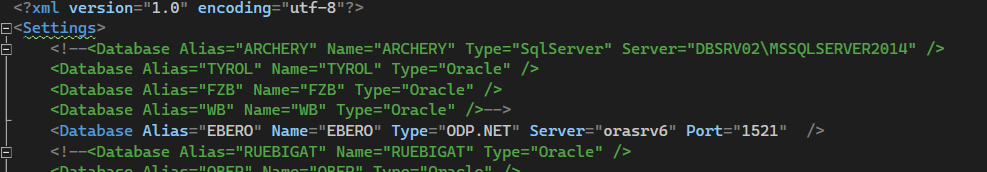 Es stehen die Datenbanken zur Verfügung, die in der ApplicationSettings.config einkommentiert sind. Bei den meisten Kunden wird hier nur eine Datenbank zur Verfügung stehen - es können aber auch mehrere sein.