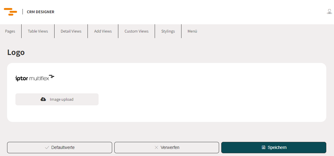 Das Logo wird unverändert als DataUri (Text) in der Datenbank gespeichert. Also immer auf die Bildgröße achten, damit das Textfile nicht zu groß wird. Als Default ist iptor multiflex hinterlegt.