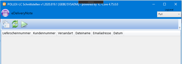 Wenn man nun eDeliveryNote öffnet, bekommt man folgende Ansicht.