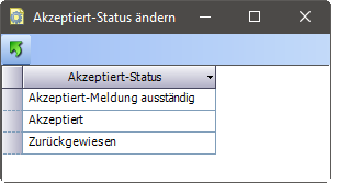 Akzeptiert Status | Auswahl: Alle, Akzeptiert-Meldung ausständig, Akzeptiert, Zurückgewiesen |