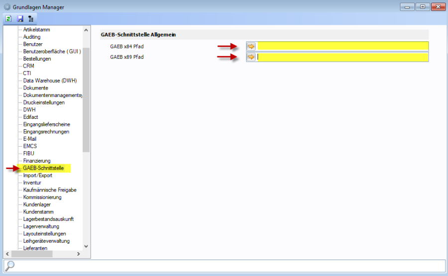 Die Export Ordner für GAEB X84 Angebotsabgabe und X89 Rechnung müssen vor dem ersten Export im Grundlagenmanager hinterlegt werden. Der Zugriff auf diese Ordner muss vom Server aus, wo sich die TaskCenter Installation befindet, möglich sein