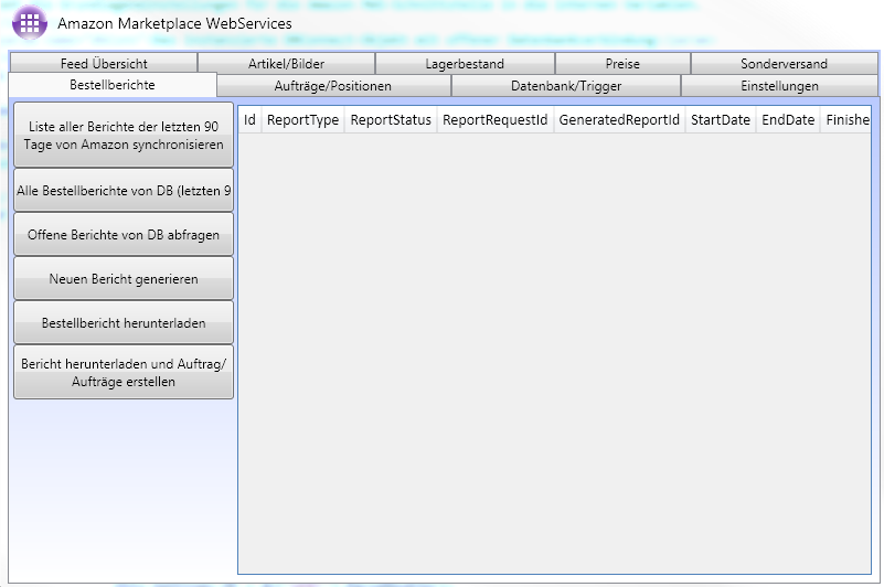 Um die AMAZON-Bestellungen abzurufen wird die Karteikarte „Bestellberichte" verwendet: