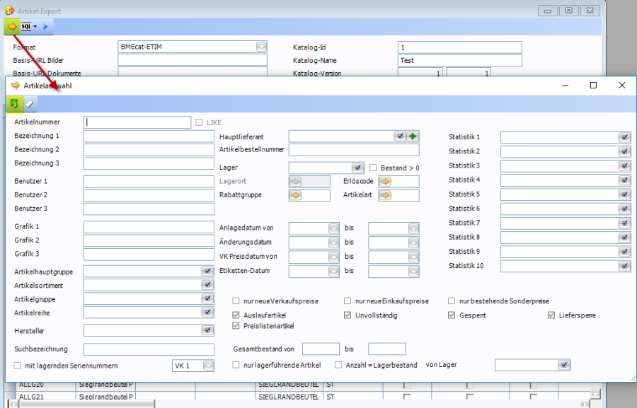 Alternativ kann die Auswahl der Artikel auch mit der SQL Abfrage erfolgen.