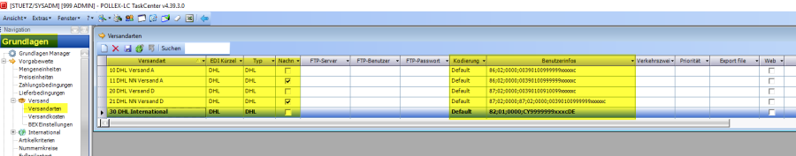 | FTP-Benutzer | X | FTP-Benutzer von DHL zur Verfügung gestellt |