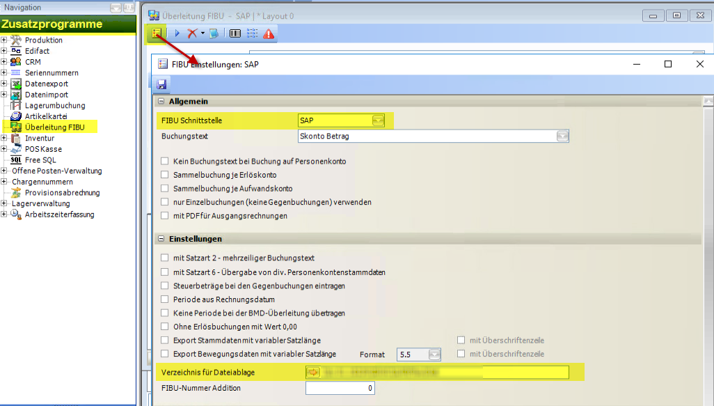 Datenübergabe an das Rechnungswesen eines Fremdsystems