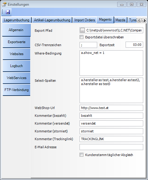 Magento Schnittstelle