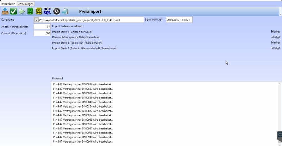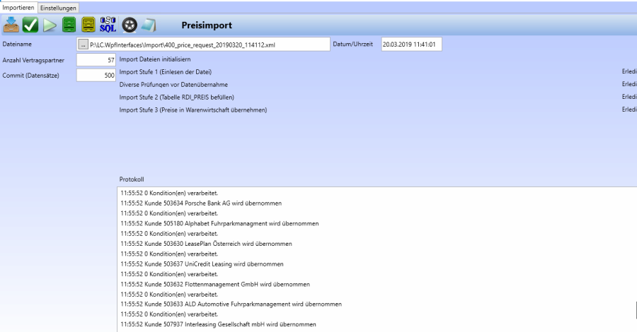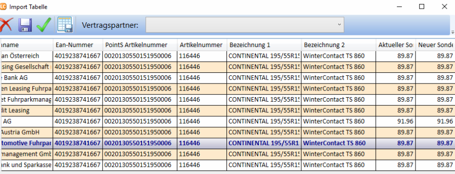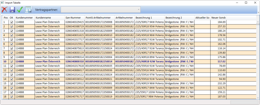 In der Protokolltabelle wird nun angezeigt, welcher Vertragspartner mit wie vielen Konditionen bearbeitet wurde.