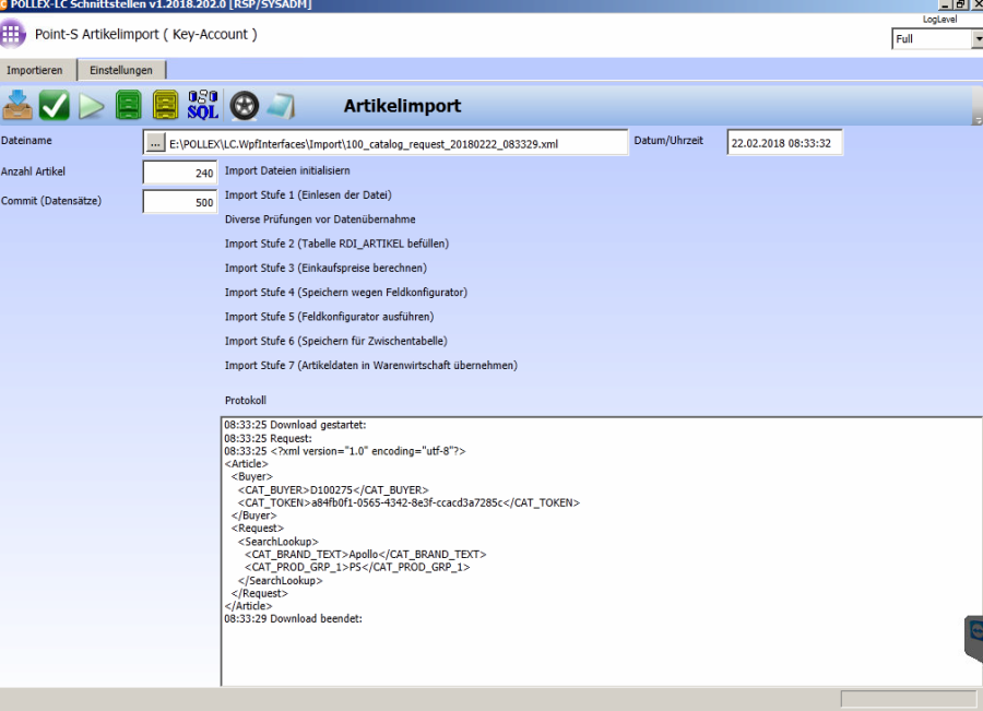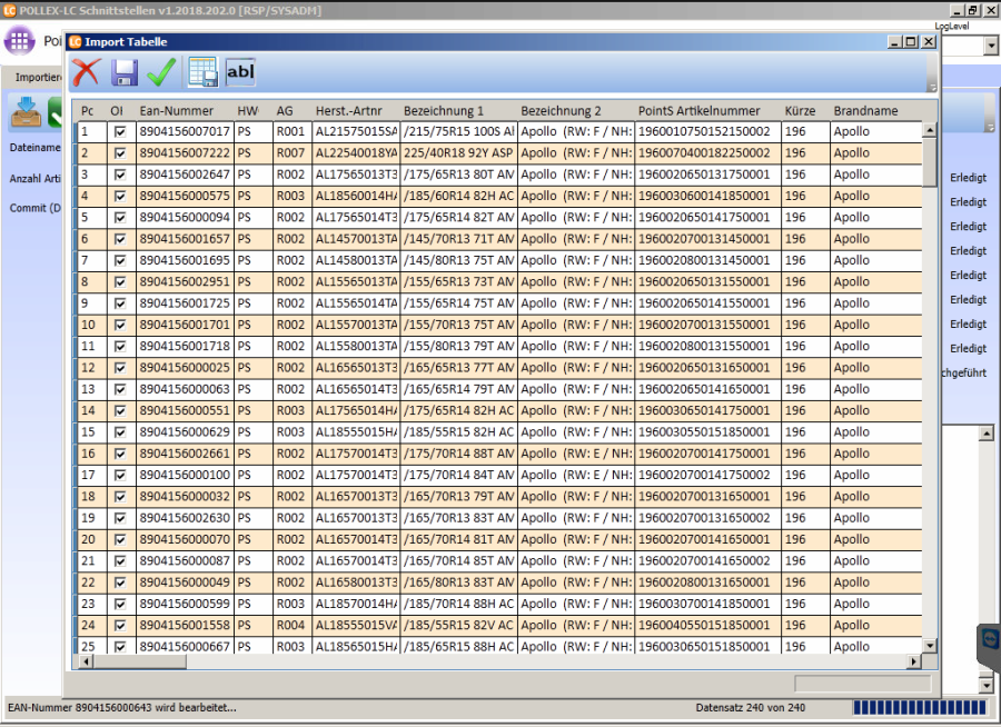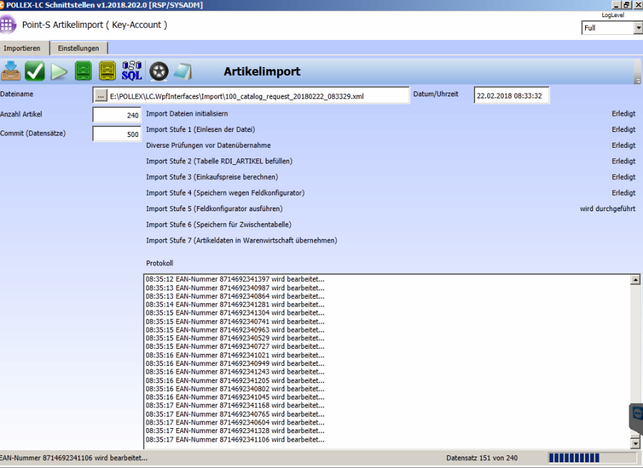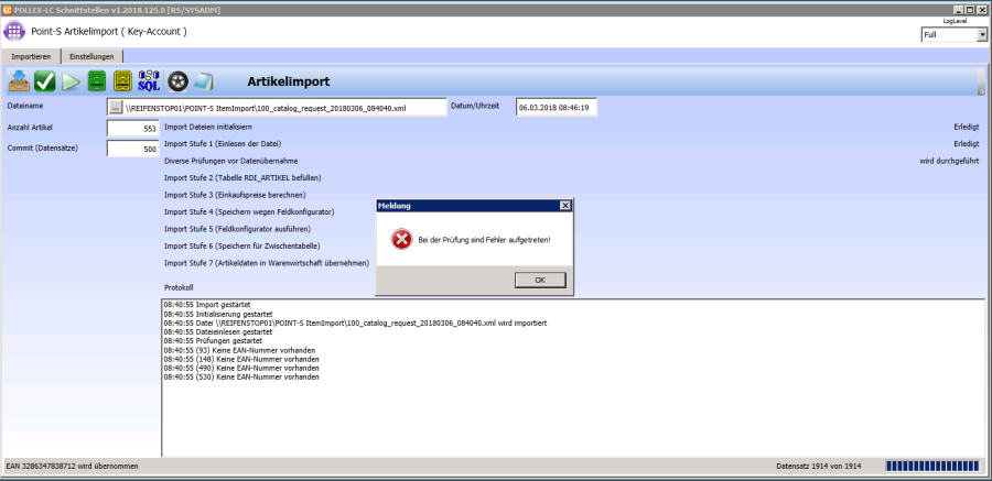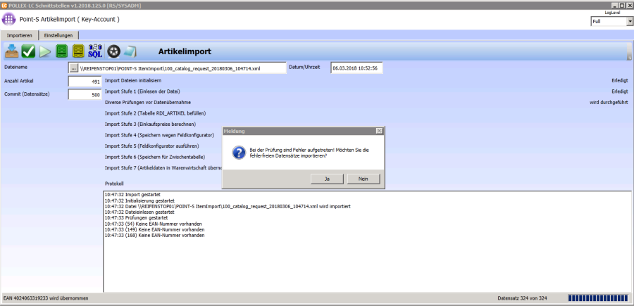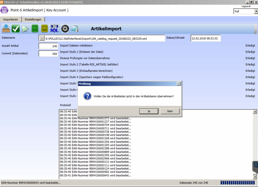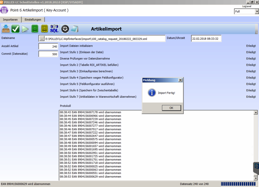 Wenn die Daten im Artikelstamm eingespielt sind kommt die Meldung