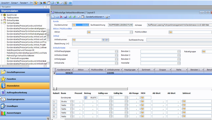 Da bei einem Vertragspartner mehrere tausend Datensätze angelegt werden können, wird geprüft ob es die Kondition schon gibt. Wenn der aktuelle Sonderpreis gleich dem neuen Sonderpreis ist, wird keine Aktualisierung durchgeführt. Ist der neue Sonderpreis unterschiedlich zum aktuellen Sonderpreis, wird die bestehende Kondition (falls vorhanden) in die Historie verschoben und eine neue Kondition angelegt.