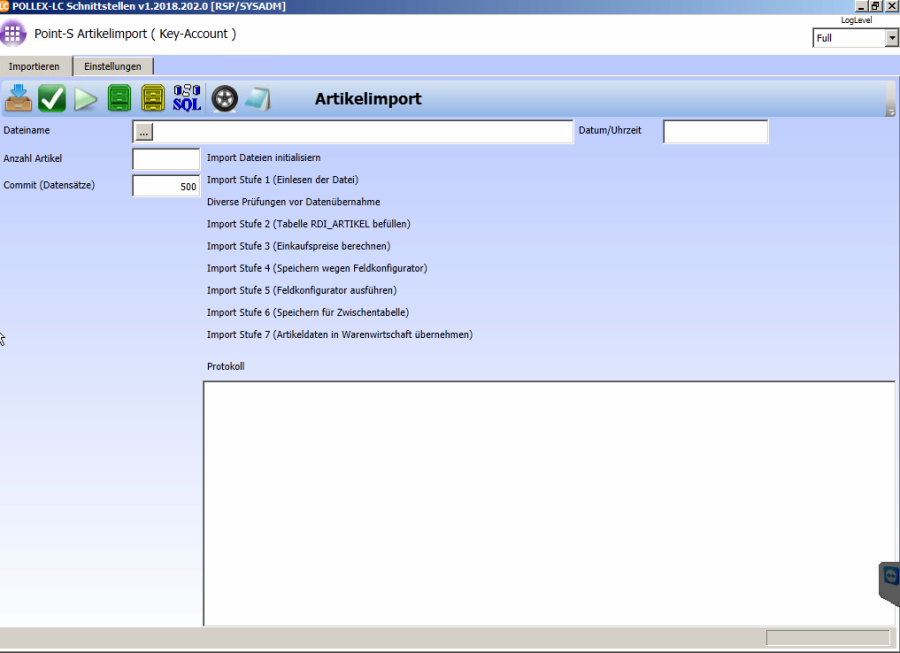 Import starten