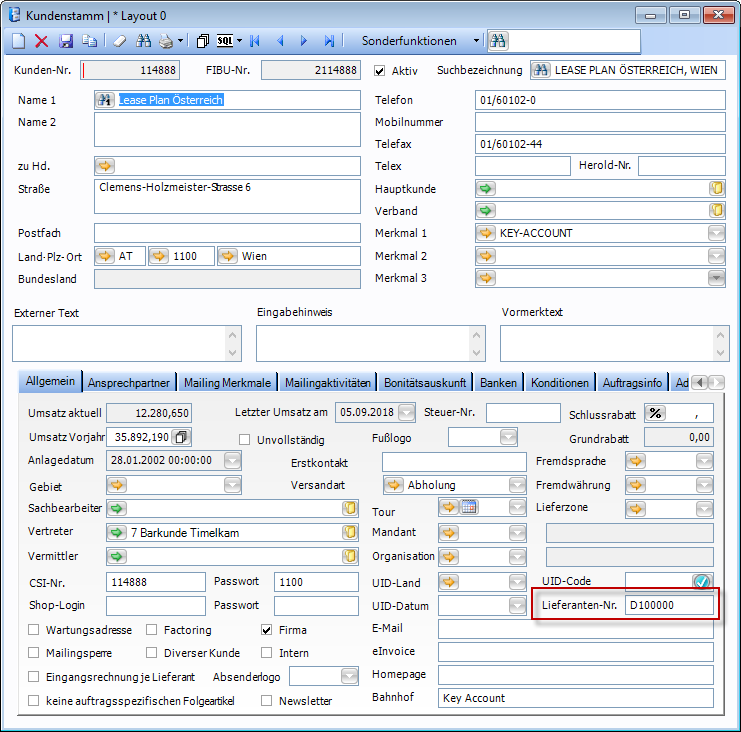Mit dem Preisimport werden Artikelkonditionen zu den Vertragspartner angelegt. Um die Kundennummer des Vertragspartner ermitteln zu können ist diese Vertragspartnernummer im Kundenstamm als Lieferantennummer einzutragen. Diese Vertragspartnernummer wird bereits auch für den Rechnungsexport an Point-S verwendet.