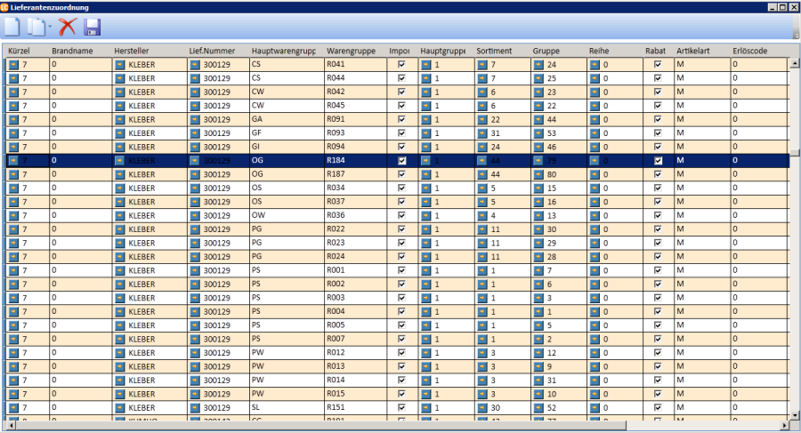 Wenn ein einzelner Datensatz zu einem bestehenden Hersteller hinzugefügt werden muss, die Zeile markieren und bei dem Button auf den Pfeil klicken und die selektierte Zeile kopieren