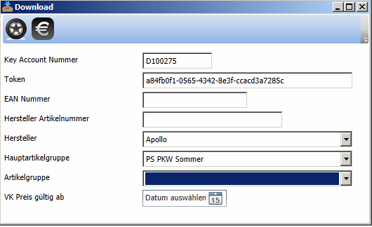 In dem Fenster Download können verschiedene Auswahlkriterien getroffen werden