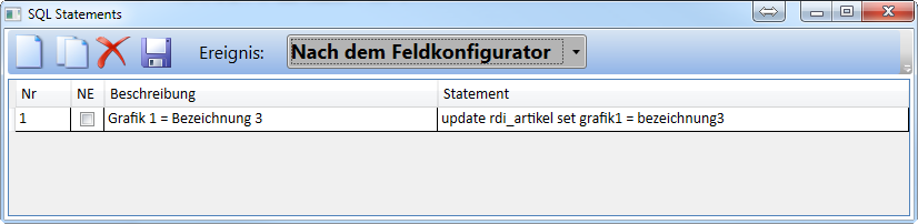 RDI_STATEMENTS | Beinhaltet SQL Statements, die in einer bestimmten Reihenfolge vor bzw. nach dem Feldkonfigurator ausgeführt werden können. |