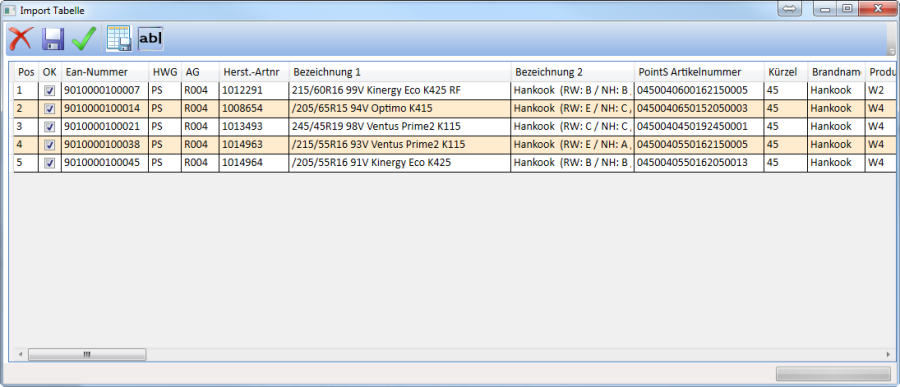 Die Symbolleiste ist beim Artikelimport bereits beschrieben worden.