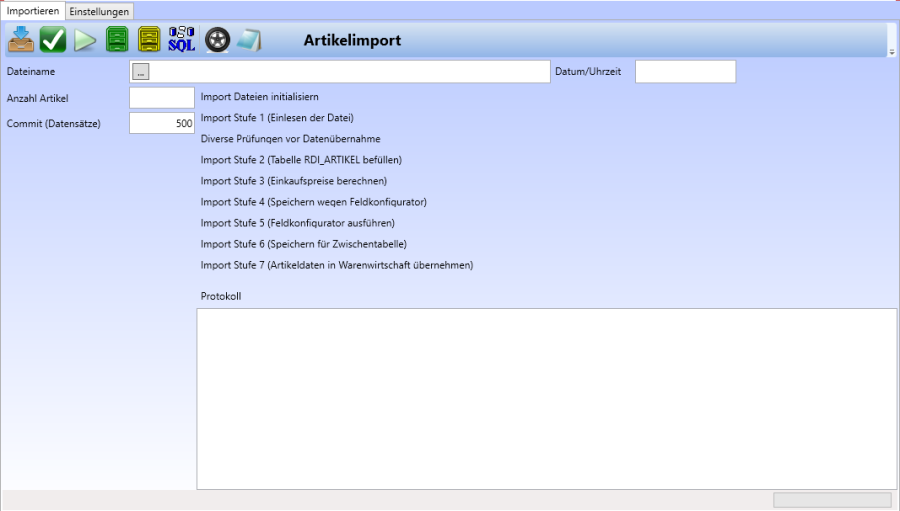 Hier eine kleine Beschreibung der einzelnen Schritte die beim Artikelimport ausgeführt werden.