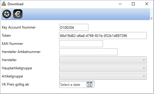 Hersteller | Um alle Artikel eines Herstellers (z.B. Goodyear) herunterzuladen kann dies hier mit Auswahl aus einer Liste erfolgen. Neue Hersteller müssen aktuell im Programm hinzugefügt werden. |