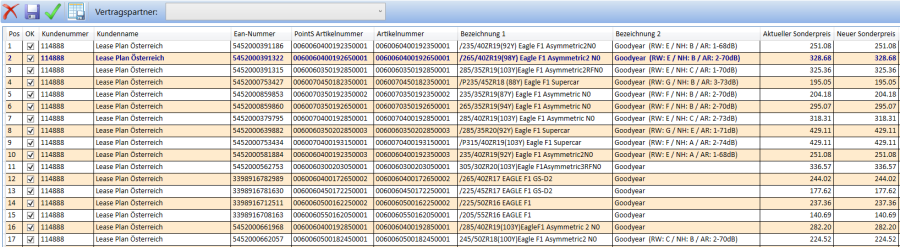 Angezeigt werden nur Artikel die identifiziert werden konnten und Vertragspartner die auch im Kundestamm einen Eintrag haben.