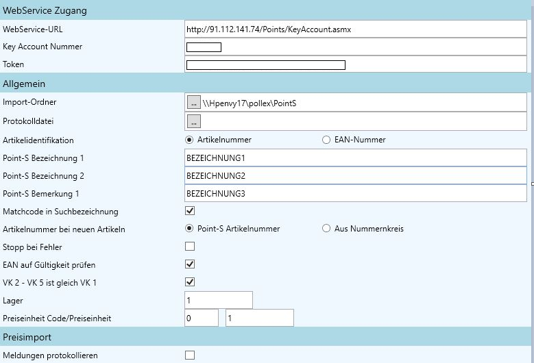 WebService-URL | Hier bitte die WebService Adresse für den Download der Artikeldaten eintragen. Diese Adresse bekommen Sie von Ihrem Betreuer bei Point-S. Die im Screenshot ersichtliche Adresse ist ggf. nicht mehr aktuell. |