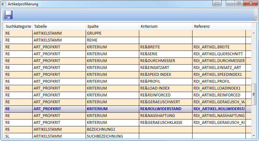 RDI_ART_PROFKRIT | Hier wird die Artikelprofilierung, welche dann in weiterer Folge für den Feldkonfigurator benötigt wird, eingetragen |