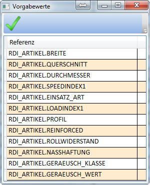 Reihe | Die Nummer des Artikelreihe aus der ERP Warenwirtschaft In der Spalte Reihe kann mit rechter Maustaste ein Vorgabewerte Fenster geöffnet werden wo die möglichen Werte ausgewählt werden können |