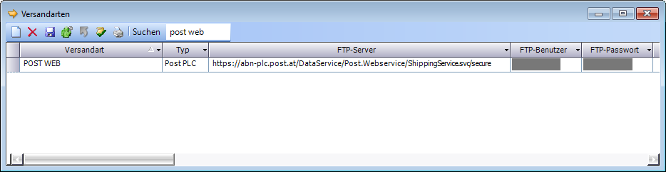Bei FTP-Server wird dir URL zum PLC-WebService eingetragen. Die Standard-Adresse ist: https://plc.post.at/Post.Webservice/ShippingService.svc/secure (wenn keine angegeben wurde, wird diese verwendet).