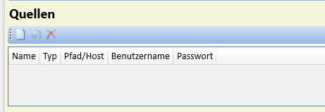 Um eine Quelle zu löschen wählen Sie die gewünschte Quelle in der Tabelle im Bereich Quellen aus und drücken den Button Löschen.