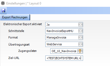 - Ziel-URL: Angabe der Test- oder Echtsystem URL für die Übermittlung der Rechnungen.