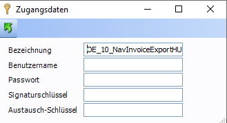| Bezeichnung | Die Bezeichnung der Zugangsdaten kann selbst definiert werden. Diese wird Standardmäßig mit "OE_<Nummer der Organisatorischen Einheit>_NavInvoiceExportHU" befüllt. |