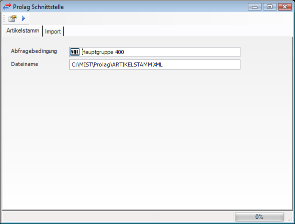 Die Erstübertragung des zum Zeitpunkt der ersten Inbetriebnahme bestehenden Artikelstammes an PROLAG® erfolgt durch den Administrator mit dem Programm Prolag Schnittstelle.