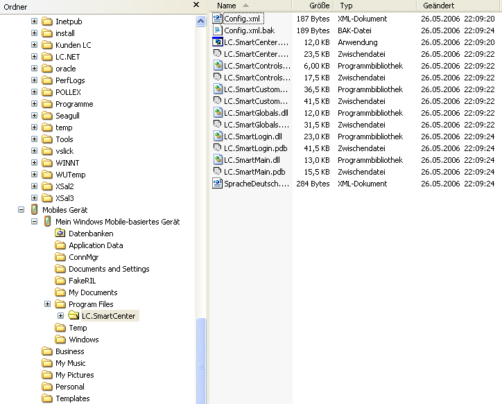 Kopieren Sie den Ordner LC.SmartCenter über den Windows Explorer auf den Emulator: