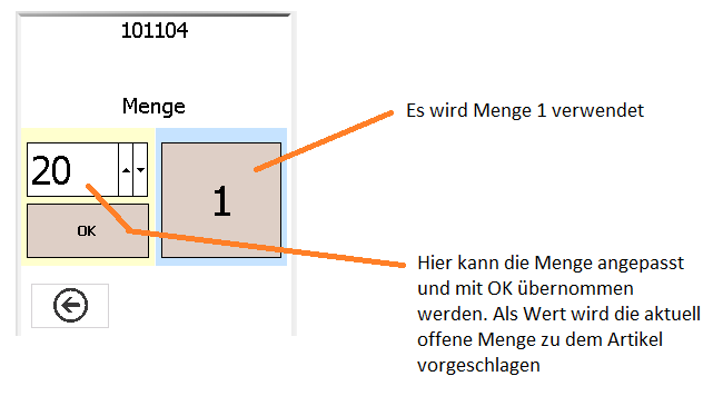 Wurde ein korrekter Lagerort gescannt, wird mit der Mengeneingabe fortgefahren.