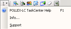 Aus der Symbolleiste des IPTOR Multiflex (Hauptfenster) kann mit dem Symbol die Befehlsliste für Hilfe, Programmversionsabfrage und Support geöffnet werden.