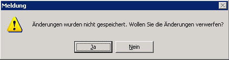 Mit Ja werden die Änderungen verworfen, das Fenster Meldung und das Dialogfenster werden geschlossen.