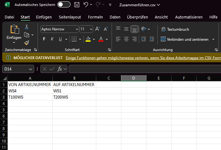 Mittels CSV-Datei kann auch eine Massenersetzung, bzw. Massenzusammenführung von Artikeln erfolgen.