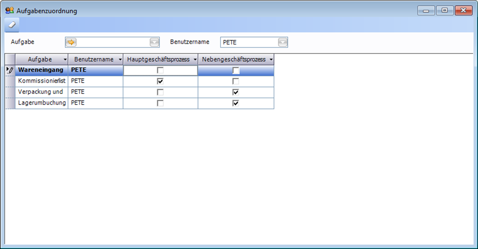 In diesem Fenster findet die Aufgabenzuordnung der einzelnen Aufgaben zu den jeweiligen Benutzern statt.