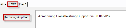 Die Rechnung wurde erstellt und kann somit im Geschäftsprozess „Rechnungen" editiert und verschickt werden. Man kann z.B. im Rechnungskopftext eintragen, dass es sich bei dieser Rechnung um eine Supportrechnung handelt sowie den Abrechnungszeitraum hinterlegen.