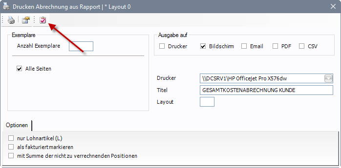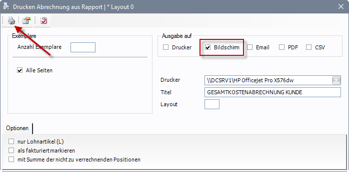 Im darauffolgenden Druckdialog kann man sich die Gesamtkostenrechnung zur Kontrolle am Bildschirm ansehen.
