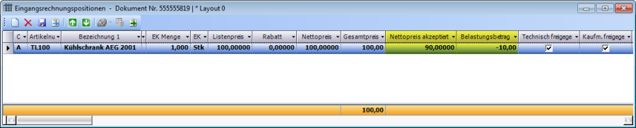 Der Unterschied besteht in weitere Folge darin, dass in den Positionen der Eingangsrechnung die Spalte Nettopreis akzeptiert befüllt wird. In dieser Spalte wird für jede Position der mit dem Lieferanten tatsächlich gültige Preis eingetragen.