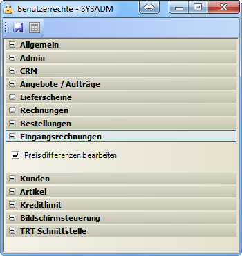 Benutzerrecht „Preisdifferenzen bearbeiten"