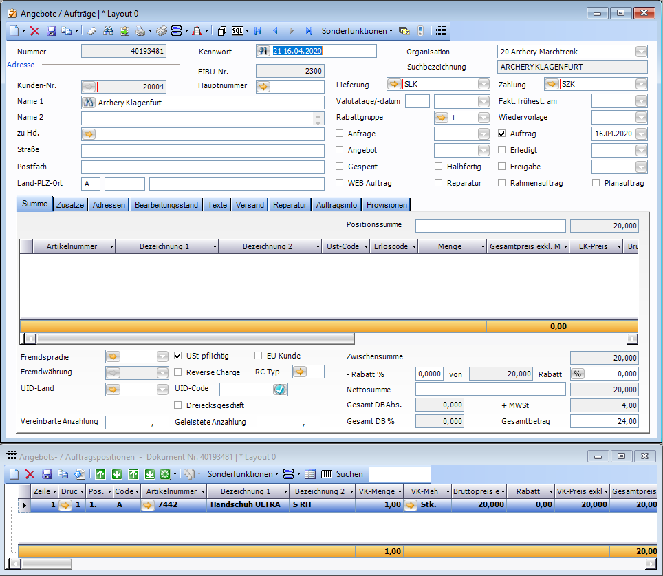 Bestellung für Kundenauftrag