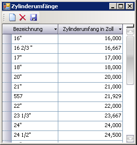 - Zylinder: Erfassung der Zylinderumfänge im Fenster Zylinder