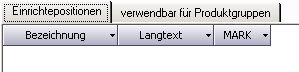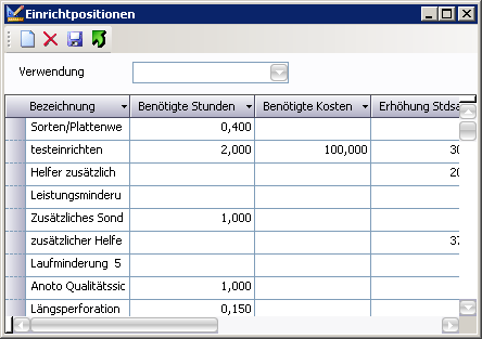 - Einrichtpositionen: Erfassung der Einrichtpositionen und ihre Werte im Fenster Einichtpositionen.