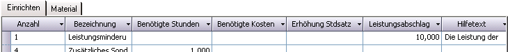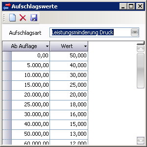 - Aufschlagswerte: Erfassung der Aufschlagswerte im Fenster Aufschlagswerte.