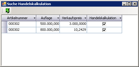Das Programm prüft, ob es bereits Kalkulationen für den Artikel gibt und zeigt die höchste existierende Version der Artikelkalkulation an.