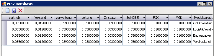 - Provisionsbasis: Erfassung der Zinssätze für die Deckungsbeitragsrechnung nach Produktgruppen im Fenster Provisionssätze.